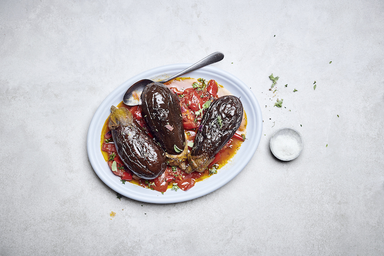 Ingredienti (per 4 persone): 2 spicchi d’aglio; 2 cipolle rosse; 1 peperoncino; 250 g di peperoni lunghi; 6 c d’olio d’oliva; 600 g di pomodori, ad esempio pomodori a grappolo; 4 melanzane; sale; pepe; ½ mazzetto d’erbe aromatiche miste, ad esempio timo, origano