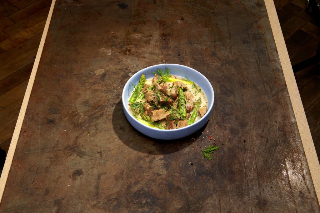 Spezzatino di vitello alle erbe con asparagi