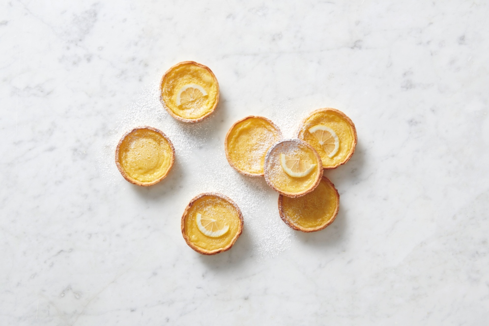 5. Per la crema, grattugiate finemente la scorza dei limoni. Spremete un terzo dei limoni. Mescolate le uova con lo zucchero. Incorporate la crème fraîche, la scorza e il succo di limone. Distribuite la crema nelle tartellette e infornate per circa 30 minuti. Sfornate e lasciate intiepidire.