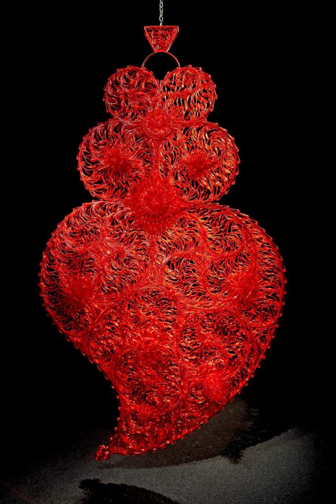 I maestosi gioielli a forma di cuore costruiti con posate di plastica traslucida (Coração Independente Vermelho), le vetrine piene zeppe di oggetti datati (Vista Interior), i letti composti interamente da blister di medicinali (Cama Valium), i divani fatti di fiori di plastica che emanano uno sgradevole odore di naftalina (Brise), gli elettrodomestici degli anni Cinquanta su cui poggiano pellicce dall’olezzo acre (Menu do Dia), i grandi seni realizzati all’uncinetto (Big Booby) e i vecchi mobili avvolti da tessuti dalle tinte sgargianti (Stupid Furniture) sono «esperienze vissute, rivestite di forma e di sentimento», come definisce Vasconcelos i propri lavori. Opere in cui il convenzionale si fonde con lo stupefacente, il reale con l’immaginario, il colto con il popolare, il particolare con l’universale, per dare vita a un universo dal monumentale e coloratissimo impeto simbolico.