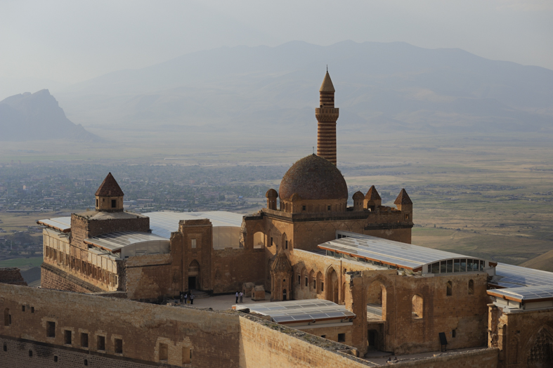 Per adesso a Doğubeyazıt devono accontentarsi dell’İshak Paşa Sarayı, un palazzo da Mille e una notte sospeso su uno spigolo roccioso che domina un paesaggio da veduta orientalista del diciannovesimo secolo. Le sue sale istoriate nei giorni di festa riempiono gli occhi di interi villaggi curdi in gita e di ragazze che si rincorrono nei cortili, rosse in viso come le fodere dei loro cellulari, scattando selfie da mandare alle amiche. Chi invece non si scompone più di tanto è il proprietario della casa da tè appollaiata sopra il complesso, «io questo panorama lo vedo tutti i giorni» sorride sornione mentre aspetta gli inevitabili avventori.