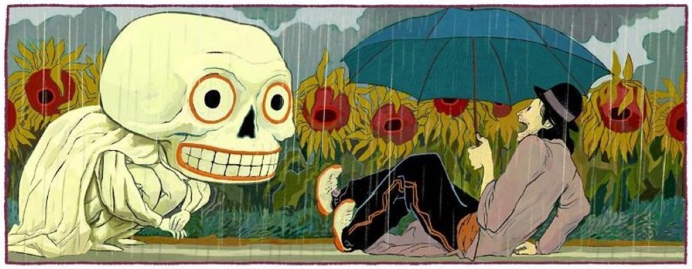 La cosa che più colpisce, mentre Eustis procede nelle sue peripezie attraverso le pagine, è lo stile di disegno. O meglio, gli stili. Fin dal primo volume si riconosce un tratto prevalente molto pittorico, simile a quello di Van Gogh (e si scoprirà nel corso della storia cosa c’entri il pittore con il satiro). Spesso però lo stile cambia, e cita altri artisti o movimenti, soprattutto delle avanguardie del Novecento: Liberty, Munch, Futurismo, Espressionismo, Mondrian, Monet, Toulouse-Lautrec, i manifesti strappati di Mimmo Rotella, Roy Lichtenstein, e poi gli scheletri sorridenti del Dia de los Muertos, le ceramiche greche, graffiti, xilografie, in un tripudio di colori e forme sempre cangianti.