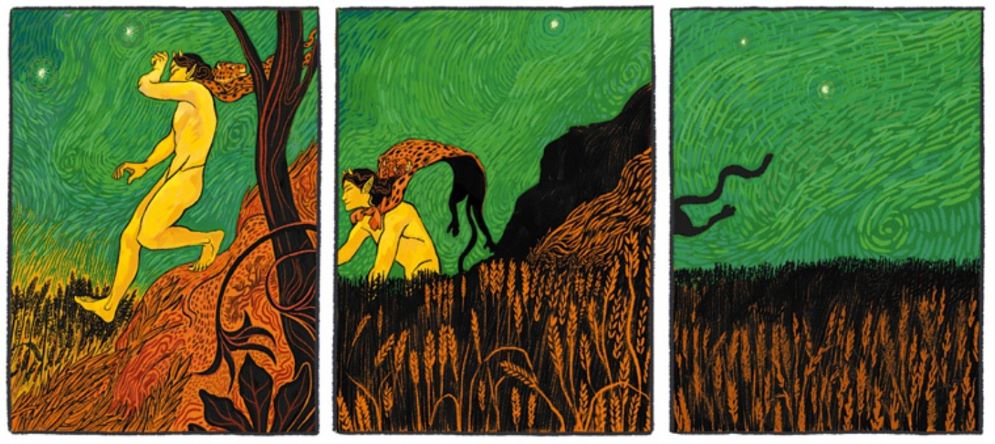 La filosofia del satiro si fonda interamente sull’euforia per le cose belle e il divertimento, senza alcuno scopo produttivo. Per questo desidera ritrovare i compagni di feste divine, e nel frattempo cerca un pochino di magia nella narrazione. Non solo lui, ma anche altre divinità nel corso del fumetto rimpiangono l’epoca in cui i mortali accoglievano i misteri del mondo e cedevano volentieri al fascino dell’irrazionale senza volerlo risolvere, al contrario del presente ultra-logico ed efficiente da cui i miti greci sono banditi. Lo stile di disegno volubile, perciò, ricalca questa visione e rende le pagine a fumetti finestre su un’esperienza disordinata e ammaliante per chi le legge.
