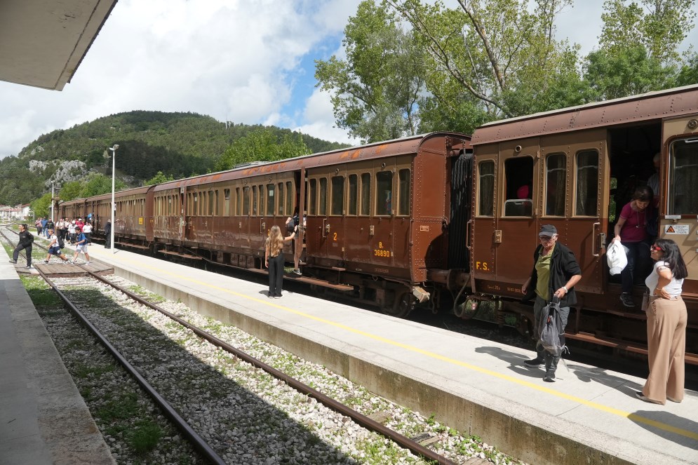 Siamo arrivati al capolinea, nel paese di Carovilli. Anche qui molti viaggiatori sono attesi per delle escursioni organizzate. A tutti viene raccomandato di essere puntuali, che l’orario della partenza per il ritorno è alle 16.00. Saluto Carlo e osservo i vari gruppi che si incamminano verso il borgo antico alla scoperta di tradizioni e storie curiose. Mi siedo su un muretto della stazione e guardo il treno. Bello nonostante gli anni, affascinante anche se non tecnologico. Un destriero in metallo che si riposa dopo una lunga cavalcata e che aspetta paziente per riportarti a casa