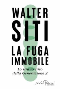 Dunque, sì, di fronte a tali immagini (e avendo ben presente la qualità confortante dei suoi romanzi), di Walter Siti, di quel suo tono scientifico-autobiografico e della sua sincerità ci possiamo fidare fino in fondo, anche quando parla di una età tanto lontana dalla sua, e perfino quando non siamo d’accordo con lui. La fuga immobile, appena uscito (Silvio Berlusconi Editore), ci descrive una generazione, la cosiddetta Generazione Z, nata più o meno tra il 1997 e il 2012, completamente nativa digitale, non particolarmente attratta dall’indipendenza economica, attenta a qualche principio morale di inclusività e rispetto, esposta a «un’epoca di ferro», al ritorno delle guerre geograficamente prossime, perennemente in attesa di un disastro che non arriva veramente mai.