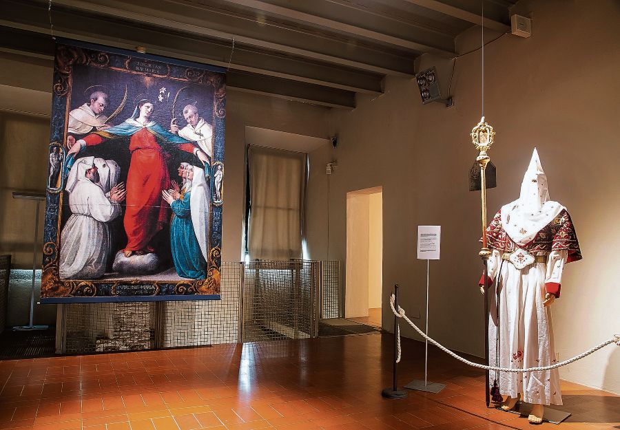 Le confraternite religiose sono un mondo ancora vivo ma che appartiene soprattutto al passato. «Sì, uno studio recente ne ha identificate oltre trentamila in Europa, con circa sei milioni di membri. L’abito gioca un ruolo analogo anche in altri contesti, per esempio in alcune subculture contemporanee, come lo streetwear o il mondo dello sport, che hanno codici vestimentari che creano appartenenza. Manca la dimensione spirituale, certo. Ma come per l’abito confraternale anche qui ci sono divise che manifestano un impegno, una scelta di vita. Anche gli oggetti del vestire dicono molto di noi, in fondo il recente clamoroso furto al Louvre di Parigi, riguarda parure di gioielli che erano indossati dai potenti per mostrare il loro rango. Ma i diademi si usano ancora oggi in diversi ambiti, dalla coroncina della reginetta di bellezza a quella d’alloro con cui si cingono la testa i laureati». Cantoni, che da sei mesi – proprio a seguito delle conoscenze maturate per realizzare la mostra – è entrato egli stesso a far parte della confraternita di San Rocco, conclude con un’immagine potente: «Molti confratelli chiedono di essere sepolti con l’abito della confraternita che è l’abito della festa, l’abito definitivo. Un segno che ci ricorda che siamo più del nostro corpo, più dei nostri vestiti». «Habitus Fidei» non è solo una mostra di abiti. È un invito a riflettere su chi siamo, su come ci presentiamo al mondo e su cosa vogliamo comunicare. Un viaggio che parte dalla stoffa e arriva al cuore della nostra umanità.