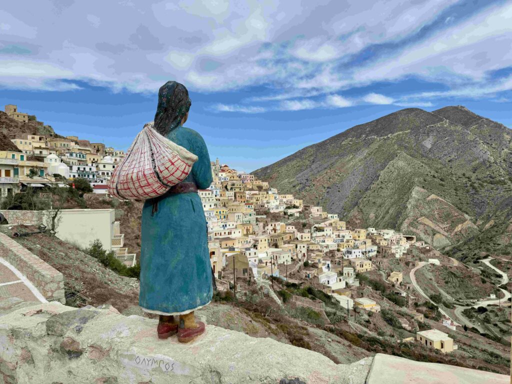 Anche la creatività femminile è legata all’economia. Sono le donne a realizzare l’artigianato locale (tessiture, ricami, le caratteristiche ciabatte con il pon-pon), e sono loro a custodire le ricette ancestrali. I piatti più noti della cucina locale, come le makarounes (pasta fatta a mano condita con formaggio di pecora o capra e cipolle caramellate), sono state tramandate dalle donne del posto. Oggi Òlympos si trova a un bivio esistenziale. Nonostante la tenacia, la popolazione residente è precipitata da circa 1200 abitanti del 1947 ad alcune centinaia di residenti permanenti del 2021. Per i residenti più anziani, figli e nipoti sono spesso simili a turisti di passaggio che ritornano solo d’estate. Il rischio più grave è la chiusura della scuola locale, che conta solo una manciata di studenti. A causa del calo demografico, entro la fine del 2025 chiuderanno circa 766 delle oltre 14mila scuole presenti in Grecia, non raggiungendo il requisito minimo di 15 alunni. I residenti di Òlympos sanno che una chiusura definitiva segnerebbe la fine di questa comunità così unica. In tale contesto di crisi, il turismo è diventato una questione di sopravvivenza e le donne sono le pioniere del cambiamento in corso. Figure come Evangelia Agapiou, fondatrice di Ecotourism Karpathos, guidano programmi di ecoturismo controllato, con l’obiettivo di attrarre piccoli gruppi che partecipino ad attività come lezioni di cucina e visite guidate a beneficio diretto dei locali.