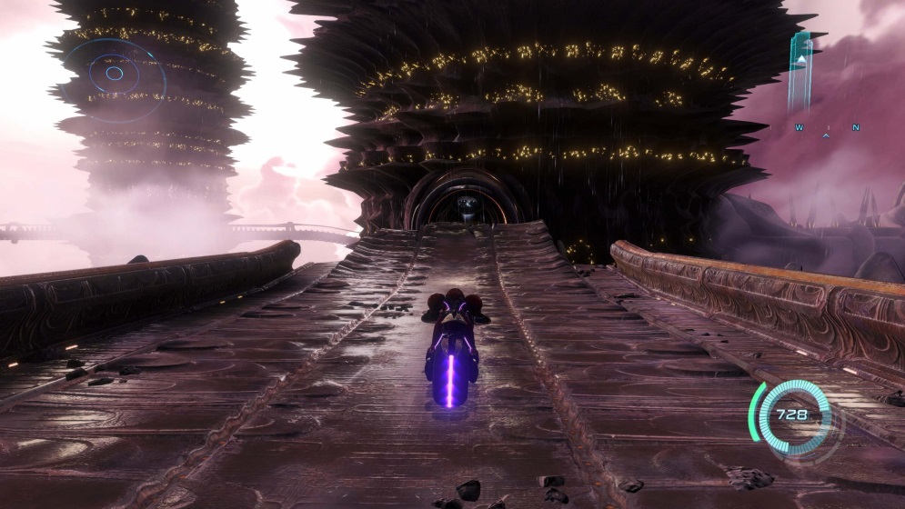 Metroid Prime 4: Beyond è un’avventura epica. La protagonista, Samus, si ritrova in una misteriosa e colossale torre chiamata Chrono Tower Lamorn. E non è più solo dotata delle sue abilità classiche, ma riceve in dono dei poteri psichici che le permetteranno di manipolare a distanza oggetti per risolvere enigmi e, bene inteso, combattere i nemici. Nonostante il gioco sia impostato su un’esplorazione più lineare rispetto al passato, l’introduzione di un unico e grande labirinto formato da diverse zone connesse rende la scoperta delle diverse zone decisamente intrigante. L’unica nota un po’ stonata è la zona centrale, la Sol Valley, che potremo visitare a bordo di una motocicletta. Purtroppo, questa zona è un po’ vuota di contenuti e diventa ben presto una semplice tappa obbligata in quello che è, altrimenti, un viaggio emozionante. E non servono a molto i combattimenti in sella per vivacizzare l’introduzione di una componente open world che non si adatta per nulla bene a questo gioco.