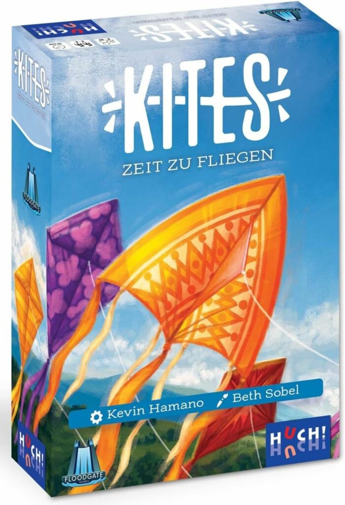 Per rilassarsi dopo una sfida a Osmosis, consiglio un altro gioco cooperativo che sembra molto diverso, ma che ha le stessa leggerezza, lo stesso incanto. Si chiama Kites, creato da Kevin Hamano e pubblicato da Floodgate Games nel 2022. I partecipanti, da 2 a 6, devono mantenere degli aquiloni sospesi nel cielo, senza che nessuno precipiti. Per fare questo selezionano una serie di carte nei pochi secondi concessi da alcune clessidre colorate di varia lunghezza. Il gioco è in tempo reale.