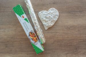 Sempre dal cartone, ritagliate una sagoma a forma di cuore. Rivestitela con carta alluminio, modellandola con le mani per conferire al cuore una forma bombata e tridimensionale.