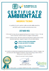 Consegnato a Migros Ticino dalla F.lli Puricelli il certificato ambientale 2025 per il riciclo delle plastiche