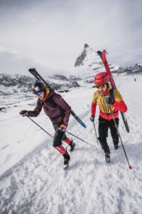 C’è chi però, quelle pelli – in seguito soppiantate da strisce realizzate in materiale sintetico (generalmente poliestere) oppure in mohair (una fibra tessile di origine animale con caratteristiche simili alla seta, ricavata dal pelo della capra d’Angora) – ha continuato a usarle. Come Ottorino Mezzalama ed Ettore Santi, che nel primo dopoguerra (nel 1927 per l’esattezza) realizzarono la prima ascensione sciistica di una cordata italiana del Monte Bianco. Sei anni più tardi andò poi in scena la prima competizione agonistica internazionale di sci alpinismo.