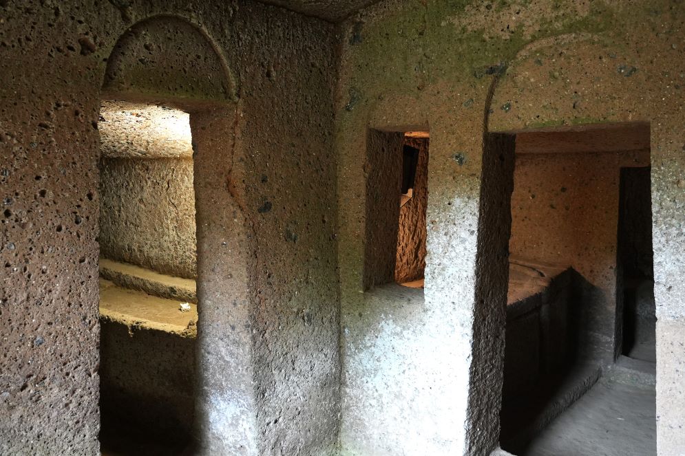 È veramente suggestivo camminare in questo sito storico. E non si può fare a meno di provare a immaginarlo più di 2500 anni or sono, quando i parenti dei defunti percorrevano queste stradine, oppure mentre erano all’opera nella costruzione delle tombe o ancora mentre scavavano il tufo e disponevano il sepolcro per farlo assomigliare il più possibile all’ambiente in cui viveva il defunto, con stanze, porte, finestre, colonne e pilastri. Segno di cura e rispetto per i morti.