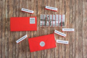 Crea con noi: una fotografia da ricostruire o frasi scritte a mano, per una busta illustrata da sigillare con un cuore