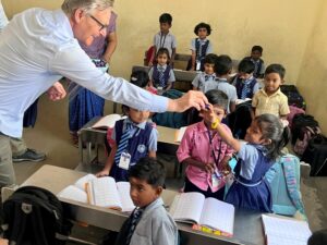 Il CEO di Migros durante la visita alla scuola indiana (Dorer)
