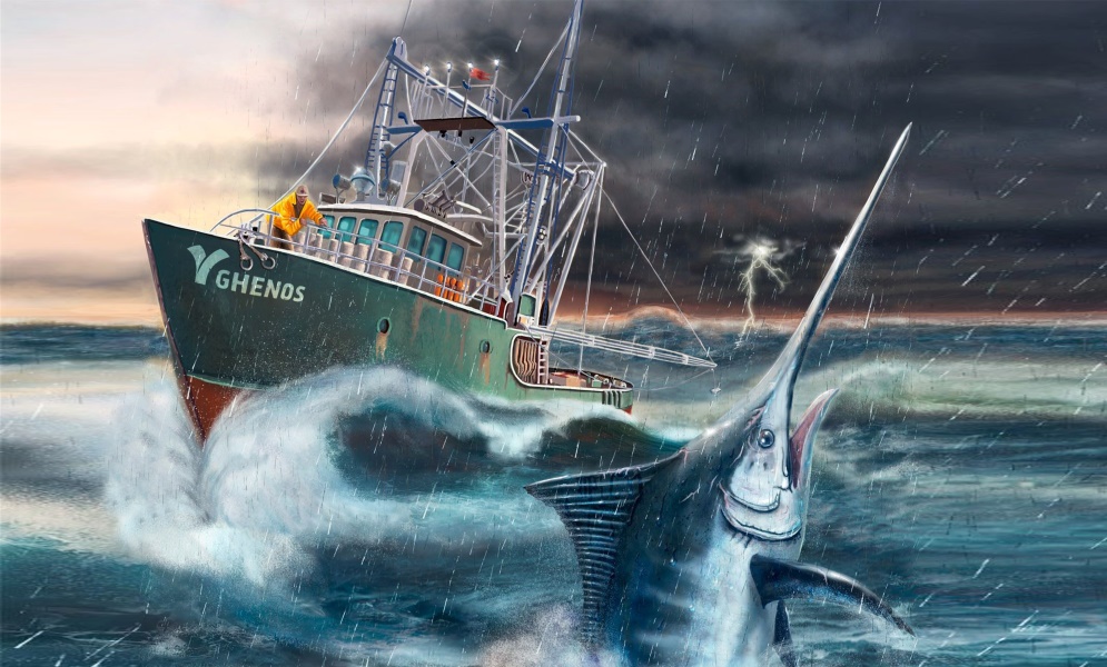 Ancora più strutturato è Swordfish, creato da Pierluigi Frumusa e Davide Rizzi (Ghenos Games, 2012). È un gestionale nel quale bisogna gestire una barca e il suo equipaggio. I giocatori, da 2 a 6, si avventurano in diverse zone di mare, pianificando gli spostamenti e l’uso del carburante, per poi tornare in porto e cercare di vendere ciò che si è preso. Naturalmente, bisogna essere pronti a fare fronte alle tempeste… e a considerare il rischio del naufragio.