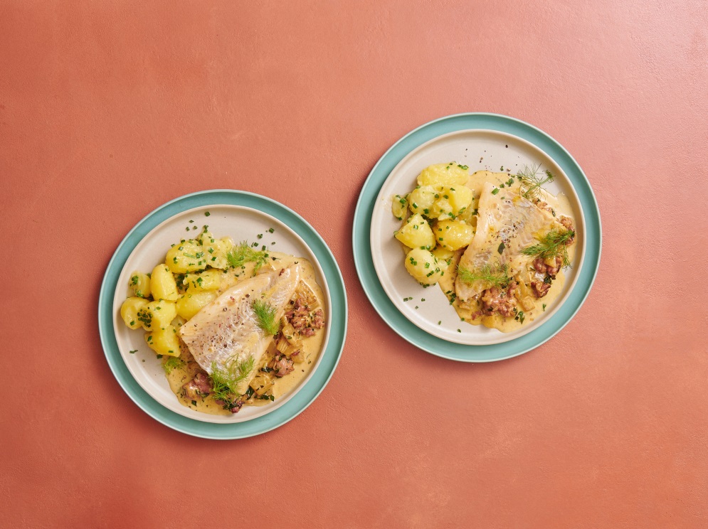 Durante la preparazione può essere utile preparare la salsa in anticipo. Poco prima di servire, scaldatela di nuovo ed eventualmente diluitela con poca d’acqua. Aggiungete il pesce e lasciatelo riposare. Accompagnate con patate, ad esempio patate con erba cipollina.