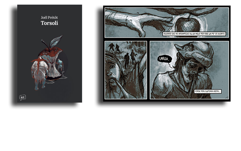 Joël Prétôt, in Torsoli, fa raccontare al figlioletto di Guglielmo Tell le sue avventure mentre viaggia con il padre, divenuto uno zombi misteriosamente docile, alla ricerca di una cura, affrontando non solo mostri ma anche nemici umani. I disegni sono realistici e utilizzano il bianco e nero, per lo più il nero, per rendere l’ambientazione tetra e orrorifica. Gualtierino Tell narra in prima persona soprattutto attraverso le didascalie, che dall’inizio introducono la storia in medias res, poi la guidano attraverso le analessi, ed esplicitano le riflessioni del personaggio di fronte agli eventi. Scompaiono quasi del tutto nelle scene chiave, per esempio quando la vita di Gualtierino è minacciata dal padre inconsapevole: la tensione culmina nel silenzio che avvolge l’attesa dell’azione fatidica.