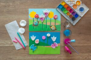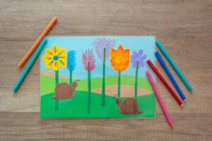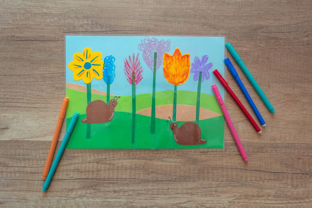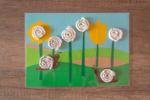 Questo semplice bricolage creativo invita i bambini a sperimentare con materiali e colori diversi in modo divertente e coinvolgente. Su una base plastificata che rappresenta un prato, potranno far sbocciare fiori speciali realizzati con carta da cucina, ovatta oppure fazzoletti.