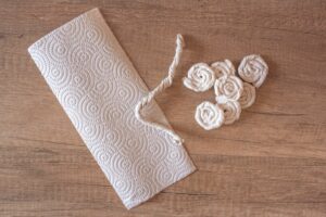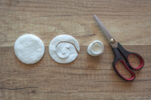 Un’idea semplice è prendere dei dischetti di ovatta e tagliarli a spirale per ottenere delle piccole roselline da posizionare sugli steli dei fiori.