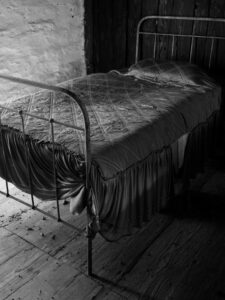 La sensazione di freddo è attutita, nell’immagine successiva, nella quale vediamo una visione ristretta sul caldo manto lanoso di un gregge di pecore. Ancora freddo e ghiaccio. Un’abbondante nevicata vista dall’interno di una finestra, quindi un vecchio letto di ferro coperto da una sottile trapunta.