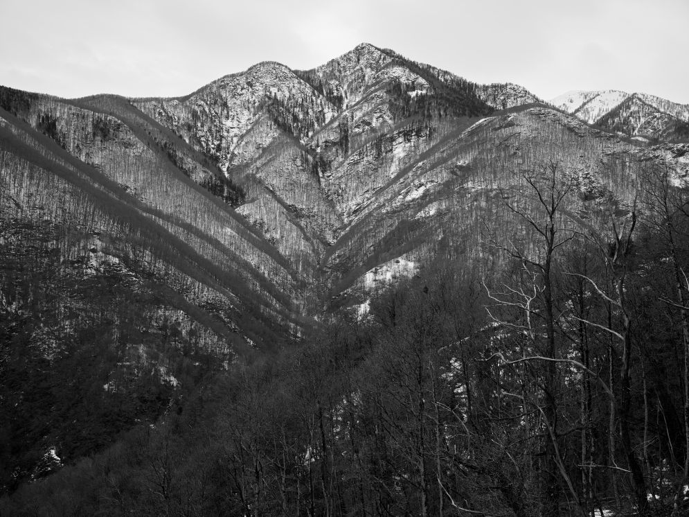 Tra il 2020 e il 2023 ha realizzato un lavoro proprio nei luoghi dell’infanzia della moglie, esposto nel 2024 al Museo Onsernonese a Loco. Ora quel lavoro è diventato un libro, Crest, pubblicato dall’editore portoghese XYZ Books. Si tratta di un volume di sole fotografie e le uniche parole che le accompagnano sono il titolo, che significa «cresta» o «crinale», un breve haiku del poeta giapponese Matsuo Bashō («Ma per un picchio / che picchia su un palo, nessun rumore / in casa») e una laconica frase finale che recita: «Fotografie realizzate in Valle Onsernone, Svizzera». Nient’altro. Nessuna didascalia, nessuna ulteriore indicazione geografica o descrizione di ciò che si vede nelle 46 immagini in bianco e nero.